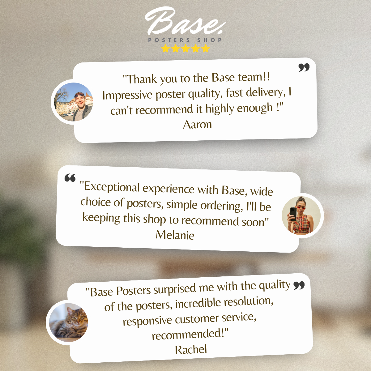 FREE framing service included - We take the hassle out of framing for you. All orders with frames will arrive at your door with your posters already professionally framed by Posters Base®. Your framed art print will arrive ready to hang in one of our beautiful white or black frames.