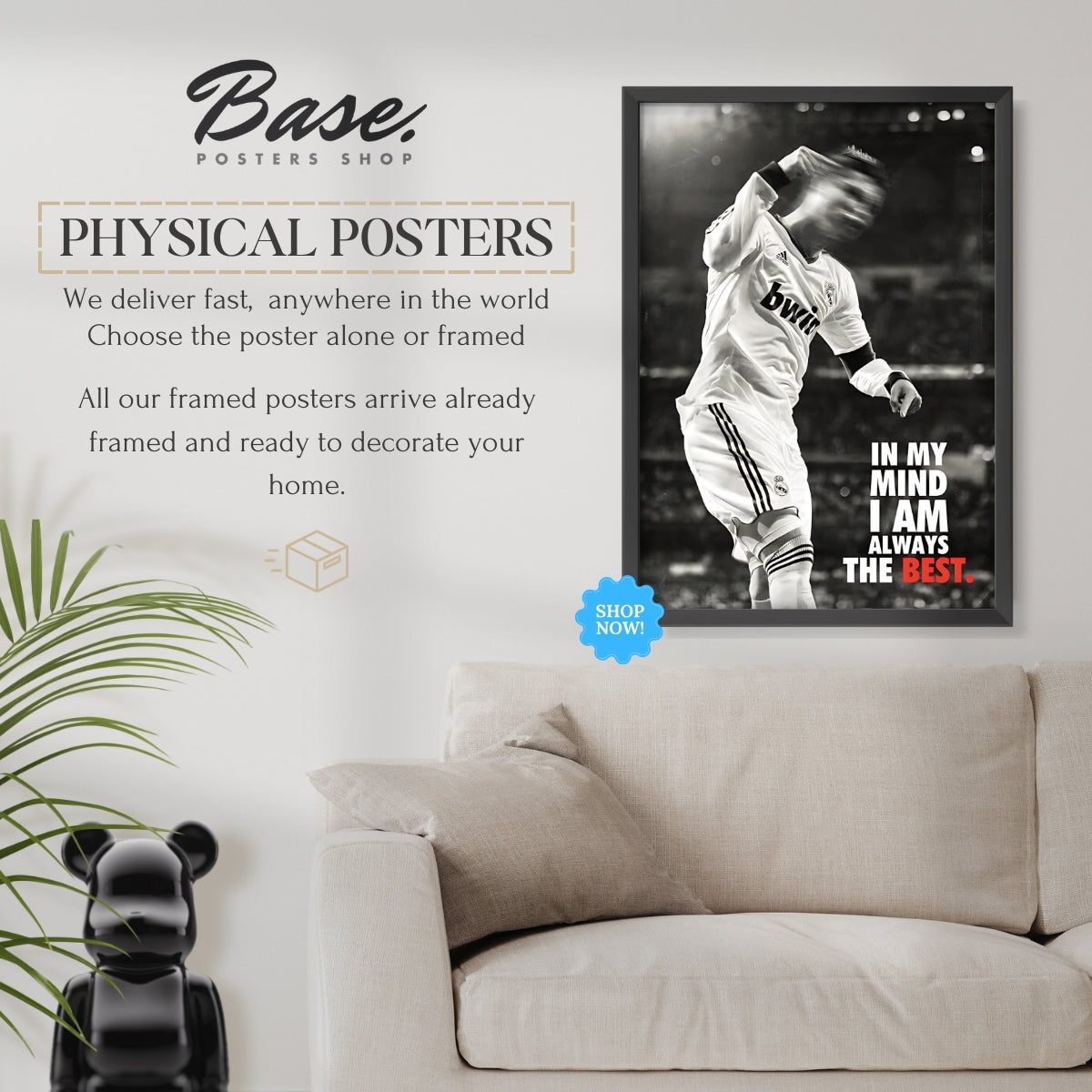 FREE framing service included - We take the hassle out of framing for you. All orders with frames will arrive at your door with your posters already professionally framed by Posters Base®. Your framed art print will arrive ready to hang in one of our beautiful white or black frames.