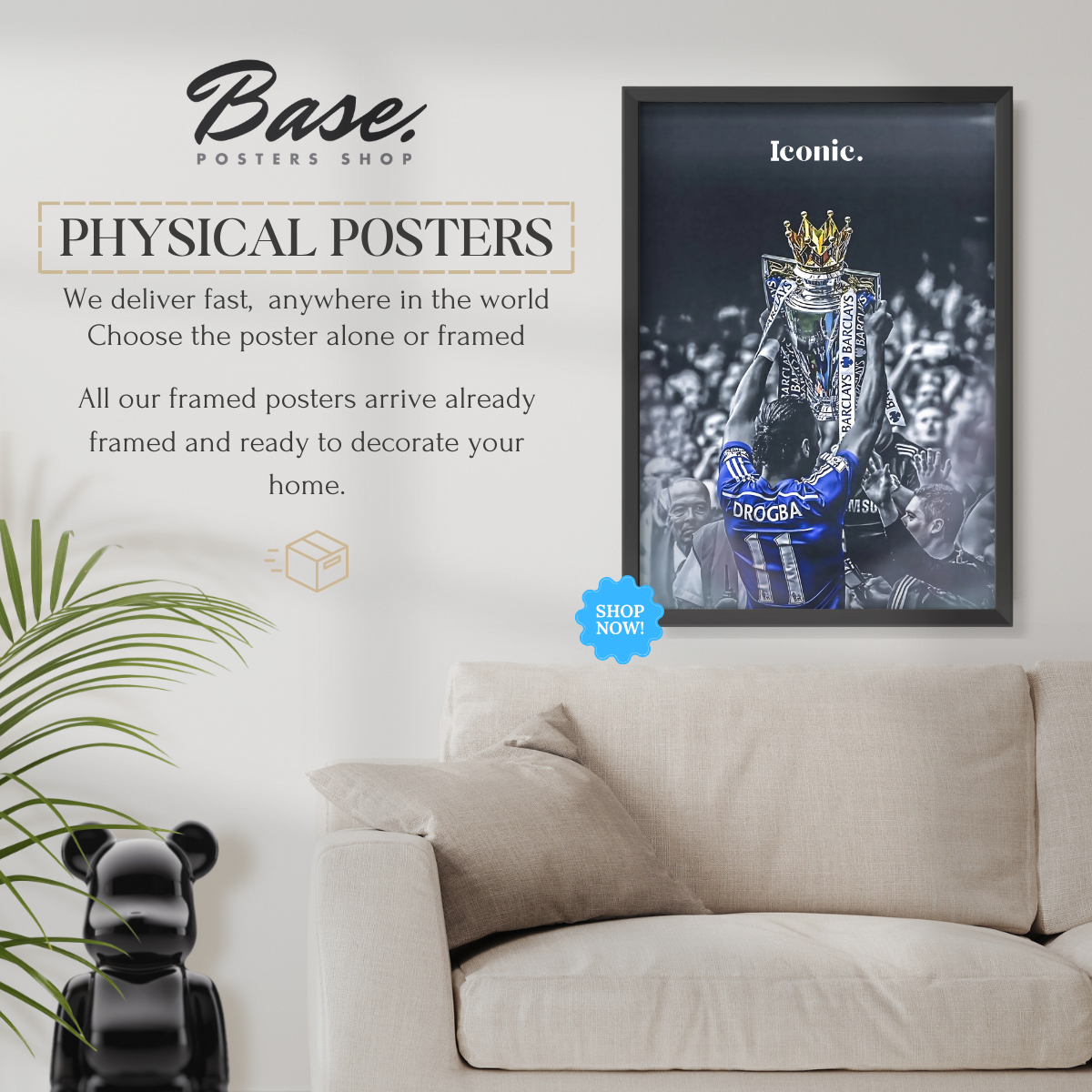 FREE framing service included - We take the hassle out of framing for you. All orders with frames will arrive at your door with your posters already professionally framed by Posters Base®. Your framed art print will arrive ready to hang in one of our beautiful white or black frames.