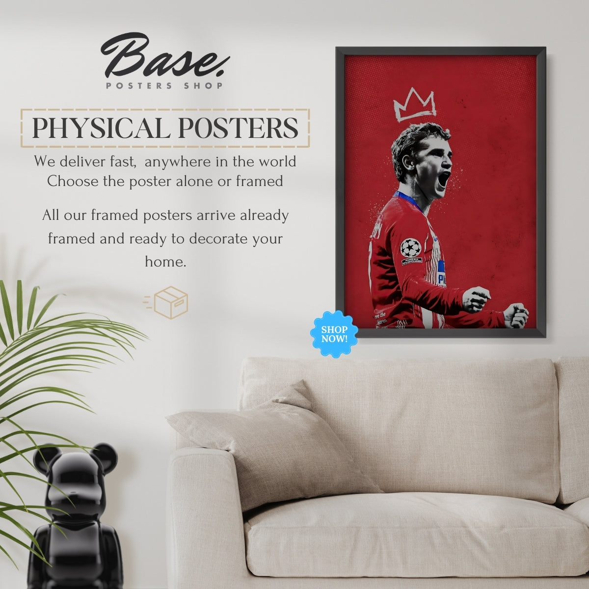 FREE framing service included - We take the hassle out of framing for you. All orders with frames will arrive at your door with your posters already professionally framed by Posters Base®. Your framed art print will arrive ready to hang in one of our beautiful white or black frames.