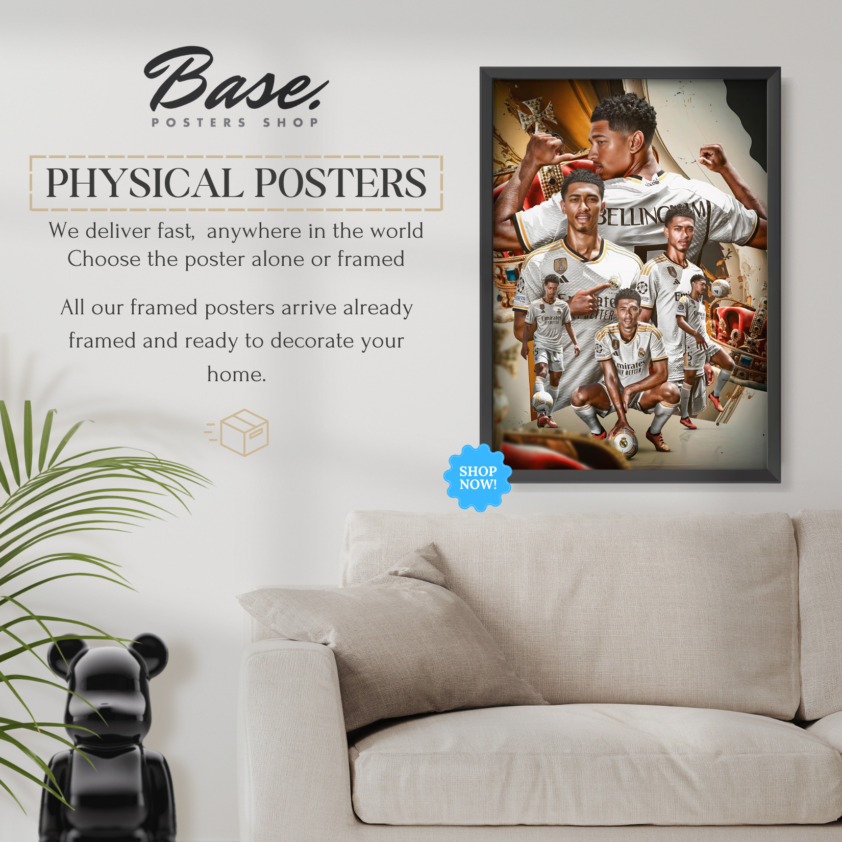 FREE framing service included - We take the hassle out of framing for you. All orders with frames will arrive at your door with your posters already professionally framed by Posters Base®. Your framed art print will arrive ready to hang in one of our beautiful white or black frames.