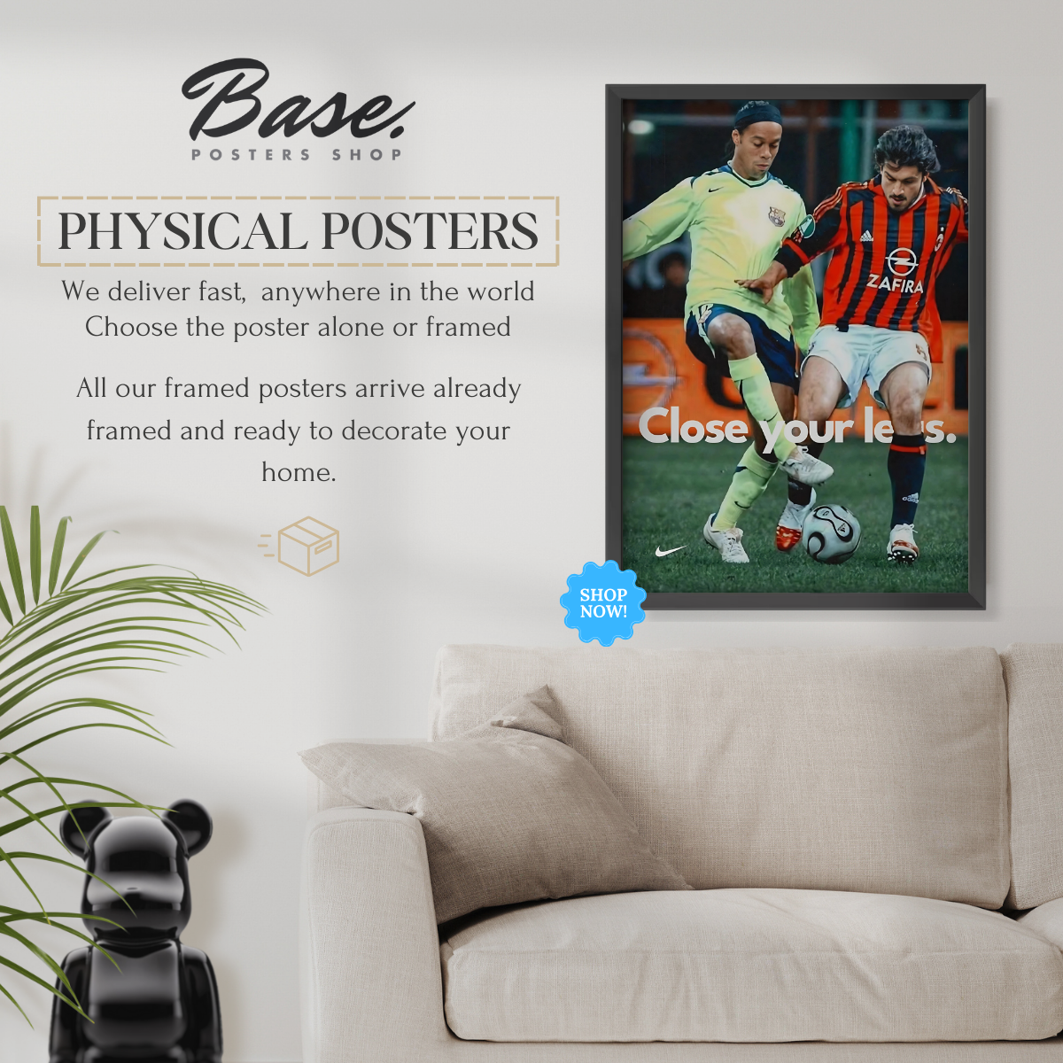 FREE framing service included - We take the hassle out of framing for you. All orders with frames will arrive at your door with your posters already professionally framed by Posters Base®. Your framed art print will arrive ready to hang in one of our beautiful white or black frames.