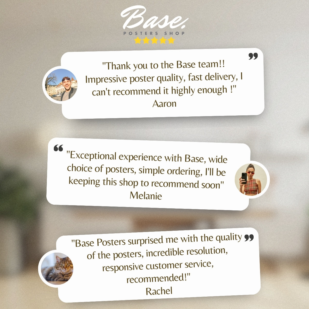 FREE framing service includedĀ - We take the hassle out of framing for you. All orders with frames will arrive at your door with your posters already professionally framed byĀ Posters BaseĀ®.Ā Your framed art print will arrive ready to hang in one of our beautiful white or black frames.